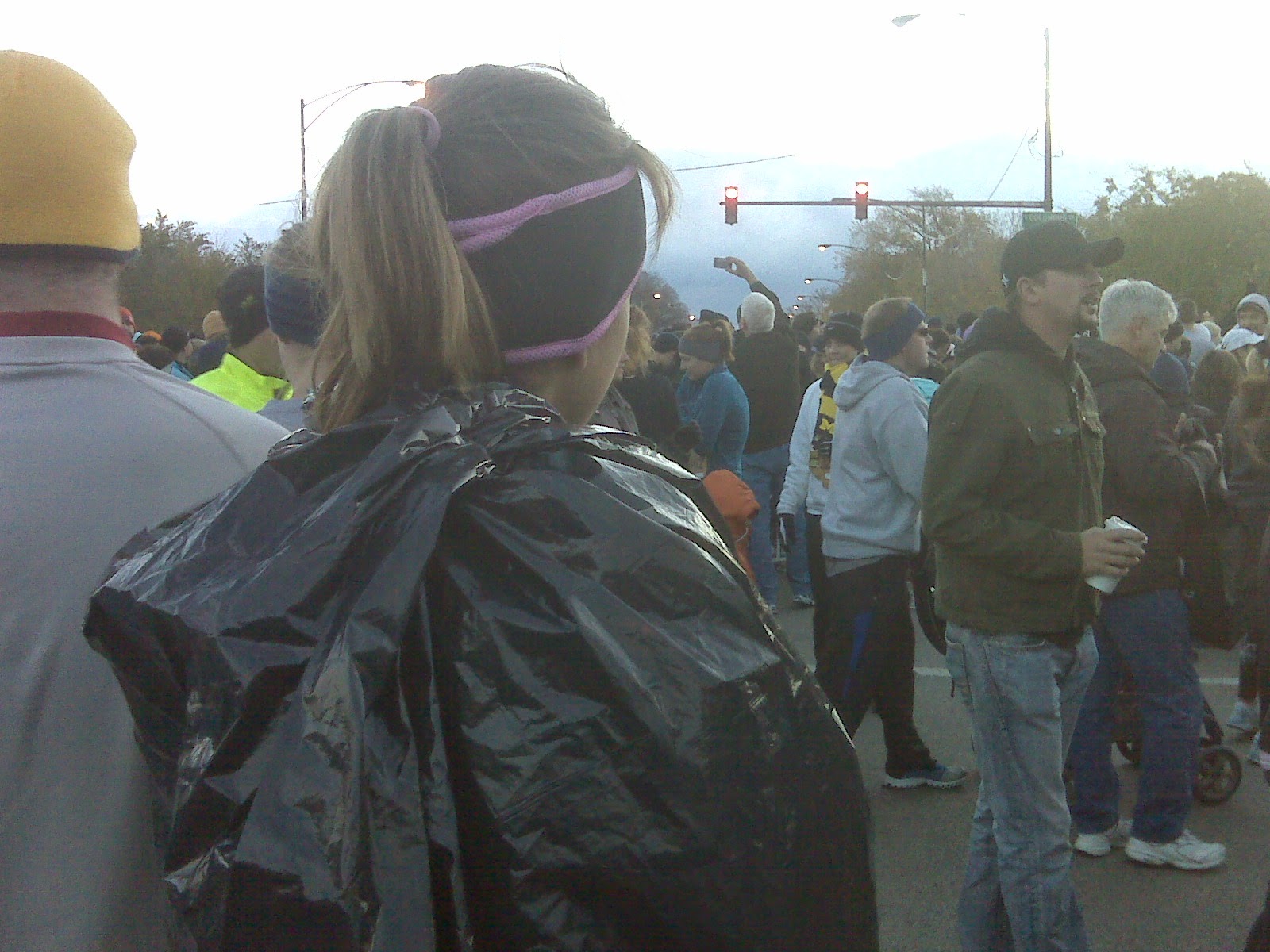 It was a cool start so most runners had extra layers to drop as soon as they got going. Trash bags are a pretty common item warn before the start to stay warm. I opted for an old fleece zip-up that I didn't care about and I highly recommend this over the trash bag option (more about that later!) The nice thing is, volunteers pick up all the dropped clothes and they are donated after the race.